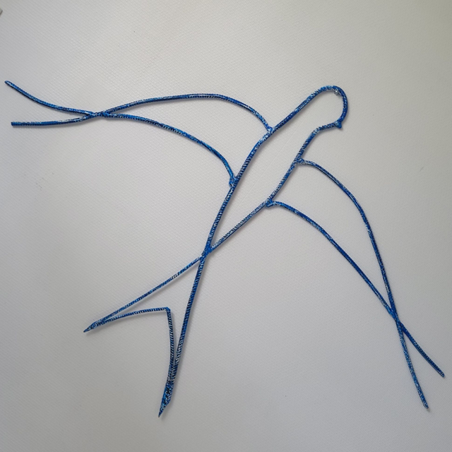 Technique et Matériaux : Toujours fidèle au fer rond de 10 mm, cette sculpture démontre une grande maîtrise du cintrage pour obtenir des courbes aussi fluides. Contrairement à vos autres œuvres, celle-ci est hors-cadre, ce qui renforce l'impression de mouvement et de liberté.