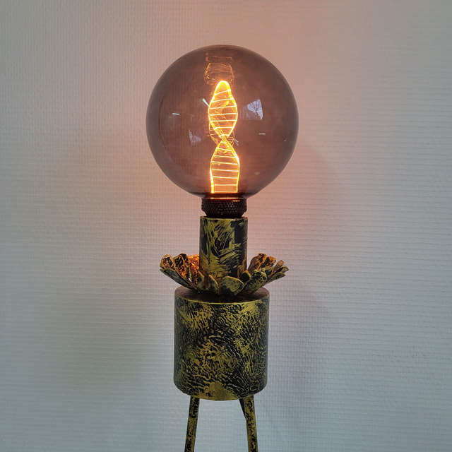 - Éclairage et Confort : Au sommet, une ampoule sphérique fumée diffuse une lumière douce, dont l'intensité est ajustable grâce à un variateur de lumière intégré. Ce détail permet de transformer l'objet d'une sculpture décorative imposante en une source de lumière d'ambiance apaisante.